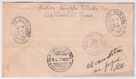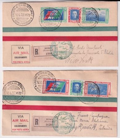 Italy 1933 Excellent Flight Cover Forgeries with C48-C49, Rome – New York cover to Iceland. Genuine Stamps on counterfeit covers, signed.