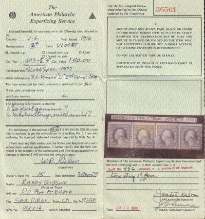 US 456 Washington / Franklin Mint H/LH/NH Just F NH/LH Pair, 2 Outer Stamps H APS Cert. cv $1700