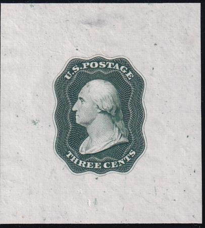 US Essays And Proof 11E13a Mint XF Washington Essay By Danforth, Bald + Co In Green On India, Re-engraved Die. Small Hinge Thin As Often With India Perfs Rare! cv $750