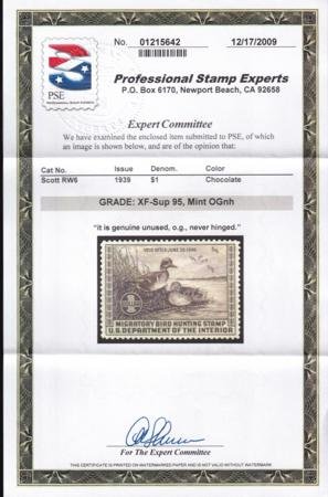 US RW6 Duck Stamps Mint NH XF-SUP PSE-95 Cert. Pristine + Beautiful!