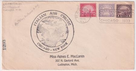 US 1933 (Jul 18) Balbo Italian Air Cruise Chicago – New York. Backstamped NY July 20.