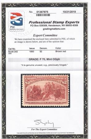 US 242 Early Commemoratives Mint H F PSE Fine 70 Cert