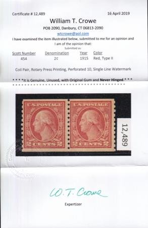 US 454 Washington / Franklin Mint NH F-VF Pair Crowe Cert