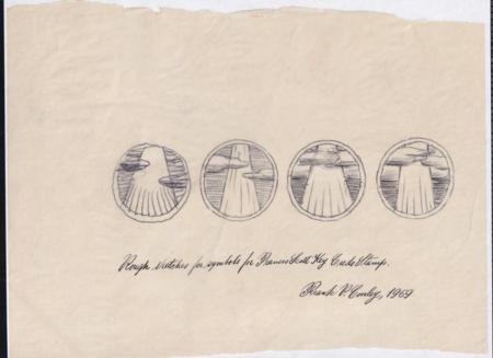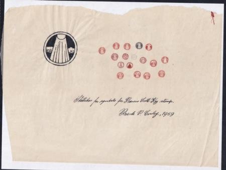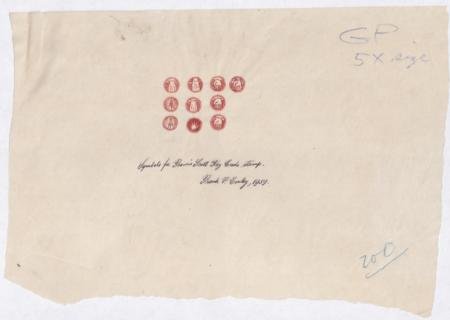US 1142-E 9 Rough Drawings Of The Emblem Of The Francis Scott Key Stamp, 5 Of Which One Detailed And Interesting, 4 More Repetitive. Mostly Signed By Frank Conley