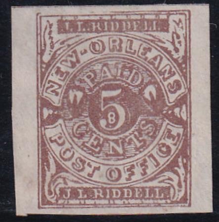 US CSA 62×3 XF Unused New Orleans 5¢ Brown On White cv $500