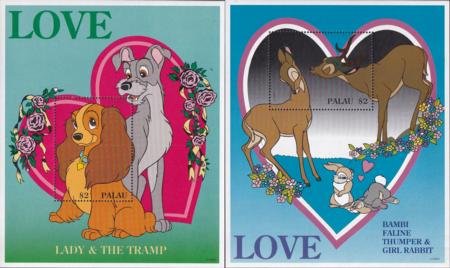 US 394-95 Trust Territories Palau NH VF Disney Sweethearts S/S (Image for reference only)