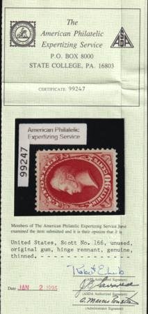 US 166 Bank Notes Mint H F-VF OG Then APS Cert