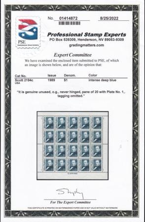US 2194c NH VF/XF Full Sheet Of 20 Tagging Omitted cv $370