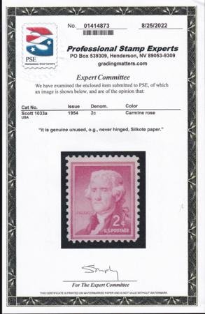 US 1033a Mint NH F-VF Silkote Paper PSE Cert