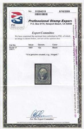 US 17 Early Classics Mint LH F-VF Fresh OG 3 1/2 Margins PSE Cert.