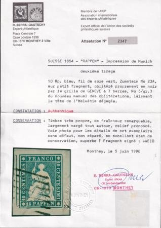 Switzerland 16 SBK 23A Used XF-SUP 4 Fl, Large Margins Around, On Piece, Extremely Fresh With Glowing Swiss Cert By Berra
