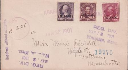 US Guam 3,4,6 On VF 1901 Registered Cover To Bloisdell In Mass. Not The Usual Philatelic Address!
