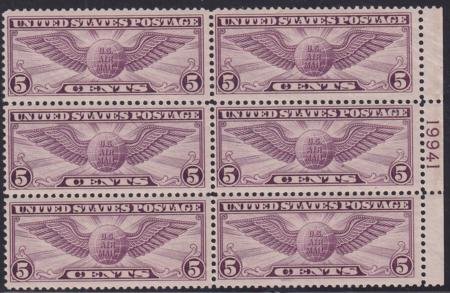 US C12 Airmail NH F-VF Plate Block, Top Horiz Perf Row