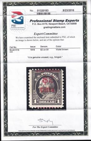 • US Shanghai Overprint K16 LH AVE PSE Cert