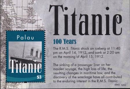 US 1088 Trust Territories Palau NH VF Titanic S/S (Image for reference only)