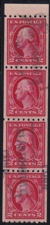 US 411 Washington / Franklin Used VF Strip Of 4 With Paste-Up Tab At Top cv $110++
