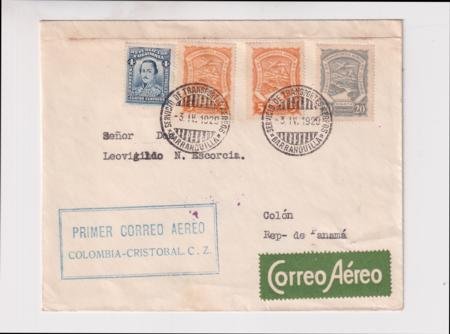 Colombia 1931 First Flight to Cristobal, Canal Zone