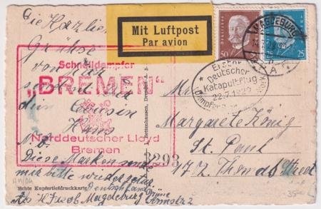 Germany 1929 (Jul 22) Bremen Catapult cover to USA on PPC of Magdeburg.
