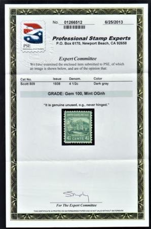 US 809 Superb+ Mint NH PSE Cert Gem 100! cv $170