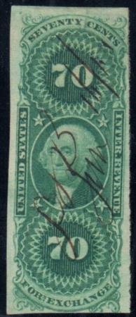 US R65a Revenue F-VF Used 70c Foreign Exchange – very slight flaws cv $750
