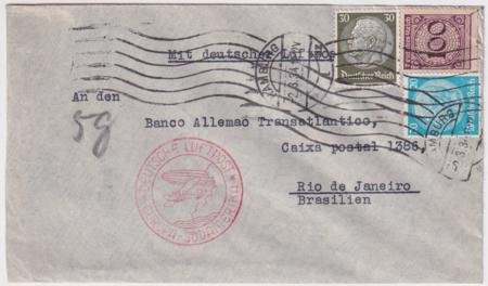 Germany 1934 (Mar 2) Commercial Catapult Cover To Rio with unusual franking.