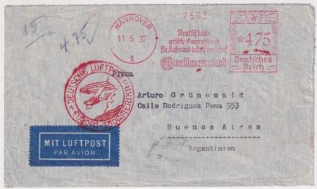 Germany 1937 (May 11) Commercial Catapult Cover to Argentina. Continental manufacturing company cover sent to Buenos Aires