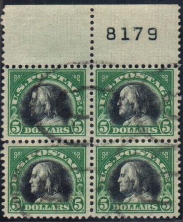 US 524 Washington / Franklin VF Used Plate Block of 4, LL stamp has faint wrinkle cv $225