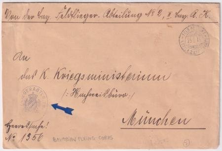 Germany 1915 Bavarian Flying Corps. Cover with Feldpost Cancel