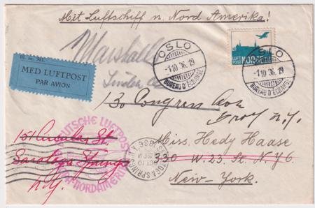 Norway 1936 (Oct 1) 10th North American flight to New York, NY and then forwarded. S.441B