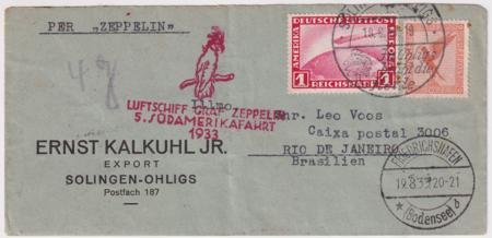 Germany 1933 Zeppelin 5th South America Flight Cover