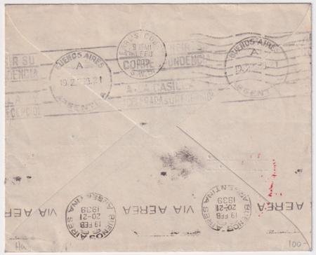Great Britain 1939 (Feb 14) Airmail Cover to Buenos Aires, Argentina. Backstamped Feb 19.