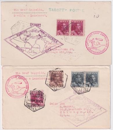 Spain 1930 Two Zeppelin So. Am. Cover and Card, Seville-Lakehurst