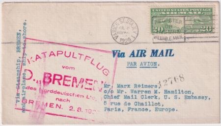 US 1929 Catapult Flight Bremen to Bremen Sent to U.S. Embassy in France