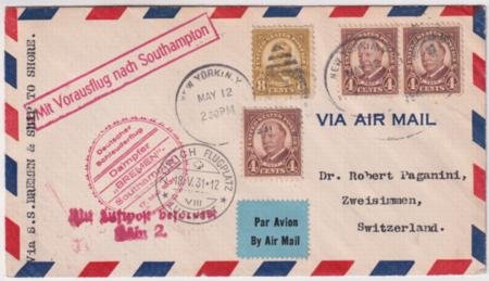 US 1931 Catapult Cover, Bremen, to Southhampton with 640 & 685, May 17
