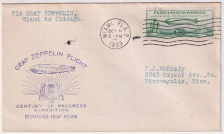 • US 1933 C18 FDC Miami, FL to Chicago, Addressed to MN