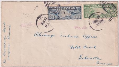 US 1927 Cover sent Air Mail via Comm. Byrd’s Aeroplane “America”