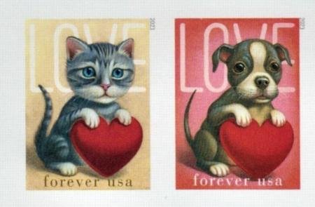 US 5745-46b Modern Imperf Puppy and Kitten Love Pair