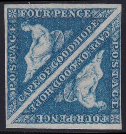 Cape Of Good Hope 4 Mint VF Unused No Gum Square Pair Bright Blue cv $2750 w/ gum