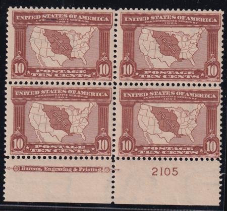 US 327 Early Commemoratives NH F-VF Bottom Plate Block Of 4