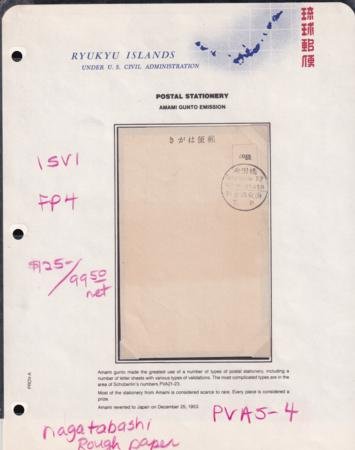US Possessions – Ryukyu Islands Amami Gunto 50 Sen Postal Card VF, Noted By Bush As 15V1, FP4, PVA5-4 Rough Paper