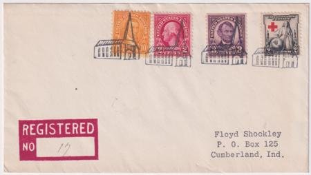 US Church, Kentucky 1931 (Oct 31) Registered cover with 601, 634, 642 and 702 sent to F. Shockley. Each stamp has a single strike of Church fancy cancel #166 in black. With registry receipt.