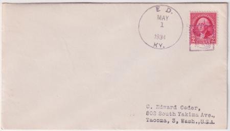 US Ed, Kentucky 1934 (May 1) Cover with 707 tied by single strike of Cat in Square fancy cancel # 257 in purple.