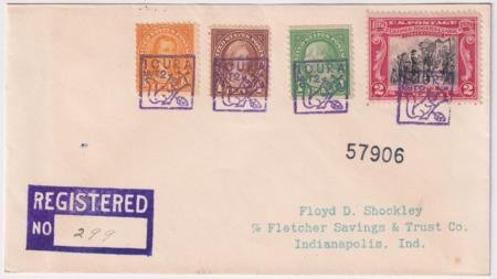 US Ed, Kentucky 1930 (Jan 14) Registered cover to Floyd Shockley with 632, 636, 642 and 651. Each stamp tied by single strike of Squirrel in Box fancy cancel #271 in purple.