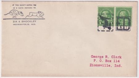 US Ed, Kentucky Circa 1932 Corner Cover with fancy cancel #283. Cover has 632 pair, one stamp tied by single strike of Witch on Broom in square fancy cancel #261 in black and one tied by “ED” in square fancy cancel #2818 in black. Not postmarked.