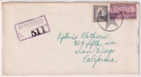 U.S.S. Blackhawk 1937 (Dec 2) Registered cover with 696 and 787 tied by Star in Circle unlisted fancy cancel in black.