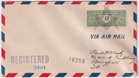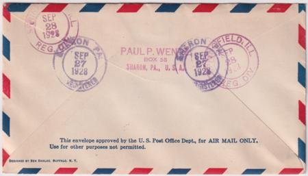 US Sharon, PA 1928 (Sep 27) Airmail registerd cover with Scott C9 and single strike Freemason symbol, compass, surveyors tools fancy cancel in purple.