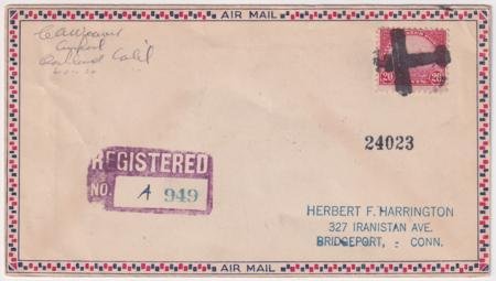 US Oakland, California 1930 (Jun 3) Registered airmail cover with 567 tied by single strike of solid airplane fancy cancel #836 in black.