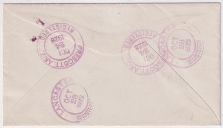 US Prescott, Arizona 1928 (Oct 24) Small sized registered cover with 623 and one strike of Smoki Snake Dancer fancy cancel #943 in black.