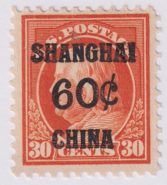 US Shanghai Overprint K14 F – VF LH Faint Crease along Bottom