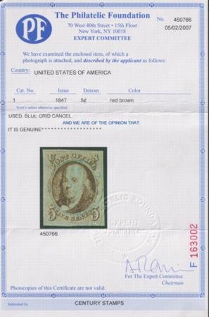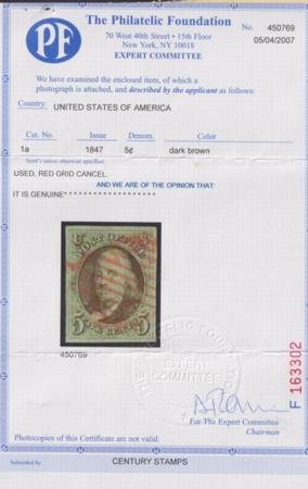 US 1a Early Classics Dual PF Certs: Genuine used Red Grid Canbcel Beautifully Balanced Margins